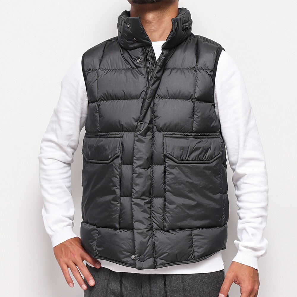 お馴染みの“控えめなブランドロゴ”は襟裏に配され、ラウンドカットされた裾はスポーティであり、マットなナイロンはカジュアルにもシックにも着こなせるモダンなダウンベストに仕上がっています。